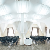 Зал просторий, комфортний і світлий, розташований таким чином, що ніякий шум з вулиці не буде Вам дошкуляти, а під час проведення заходу ніхто з персоналу не потурбує. При бажанні розташування меблів можна поміняти.