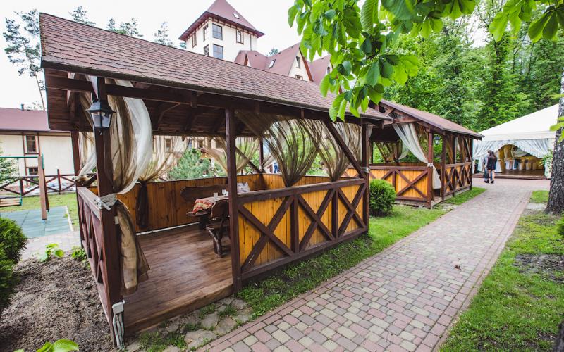 - Усамітнення. Незважаючи на те що корпоратив є досить гучним святом, в готельно-ресторанному комплексі завжди можна залишитися наодинці з власними думками. У гостей буде можливість прогулятися по лісі, подихати свіжим повітрям, послухати приємну музику за чашкою кави або чаю.